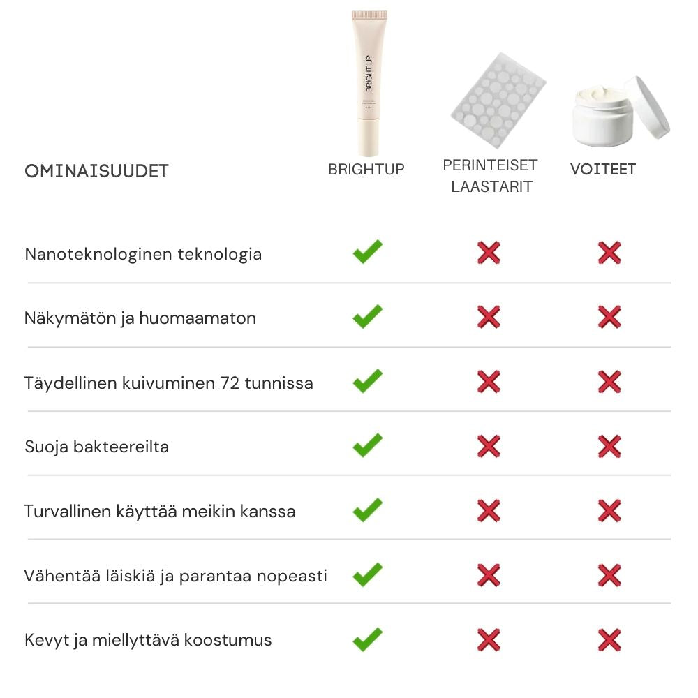Tämä BrightUp-voide yllätti minut todella. Minulla oli muutamia todella tulehtuneita hormonaalisia finnejä, ja vain 24 tunnissa ne vähenivät huomattavasti! Ja yhdellä finnejä, johon käytin voidetta, se melkein katosi näkyvistä!